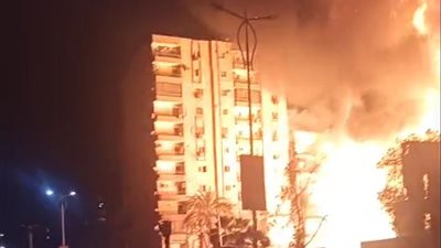 وامتدت النيران إلى عدد طوابق بالمباني المجاورة وتحاول قوات الحماية المدنية السيطرة على الحريق.
