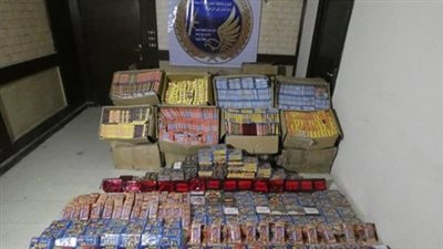 وضبط شخص، مقيم بدائرة قسم شرطة الشيخ زايد بالجيزة، وبحوزته 17700 قطعة ألعاب نارية مختلفة الأشكال والأحجام.