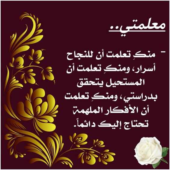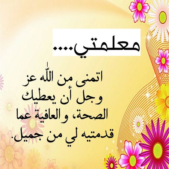 - لا أستطيع أن أعبر لك يا معلمي الفاضل عن مدى أهميتك في حياتي فأنت منبع العلم والمعرفة ومحارب الجهل بالنسبة لي تحياتي.