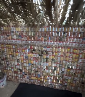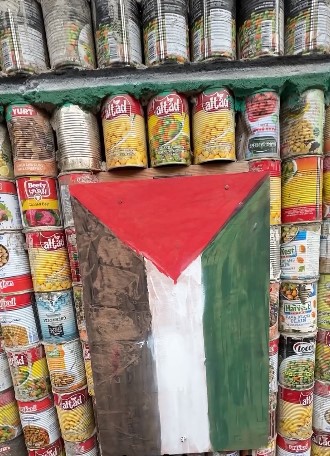وصدر الصحفي الفلسطيني هاني أبو رزق الفيديو على حسابه الشخصي عبر موقع تداول الصور والفيديوهات إنستجرام، وشارك متابعيه هذه الخيمة المميزة وسط مخيمات النازحين في جنوب غزة، تلك الخيمة التي تم تكوينها من مُعلبات المُساعدات الفارغة لإنشاء حوائط الخيمة.