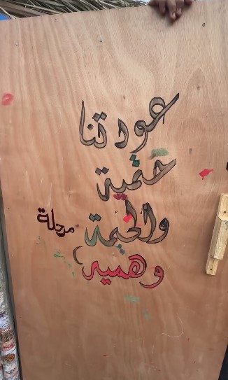 وأضاف أبو رزق: وكُتب على الخيمة..عودتنا حتمية والخيمة مرحلة وهمية، موضحًا أن رغبة أصحاب هذه الخيمة في إظهار قوتهم وقوة جميع أهالي غزة للجميع، ورغم القصف الإسرائيلي للمنازل واللجوء للخيم النازحين، إلا أنها ستكون مرحلة وهمية وسيعود كل مغترب لمنزله وأرضه مرة أخرى.