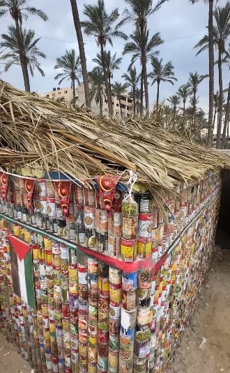 نشر الصحفي الفلسطيني هاني أبو رزق فيديو عبر مواقع التواصل الاجتماعي، يروي فيه تفاصيل عن خيمة مميزة من مخيمات نازحين غزة، استطاعوا أصحابها جذب أنظار الجميع من خلال استخدامهم لـ المعلبات المعدنية الفارغة التي ميزت حوائط هذه الخيمة.