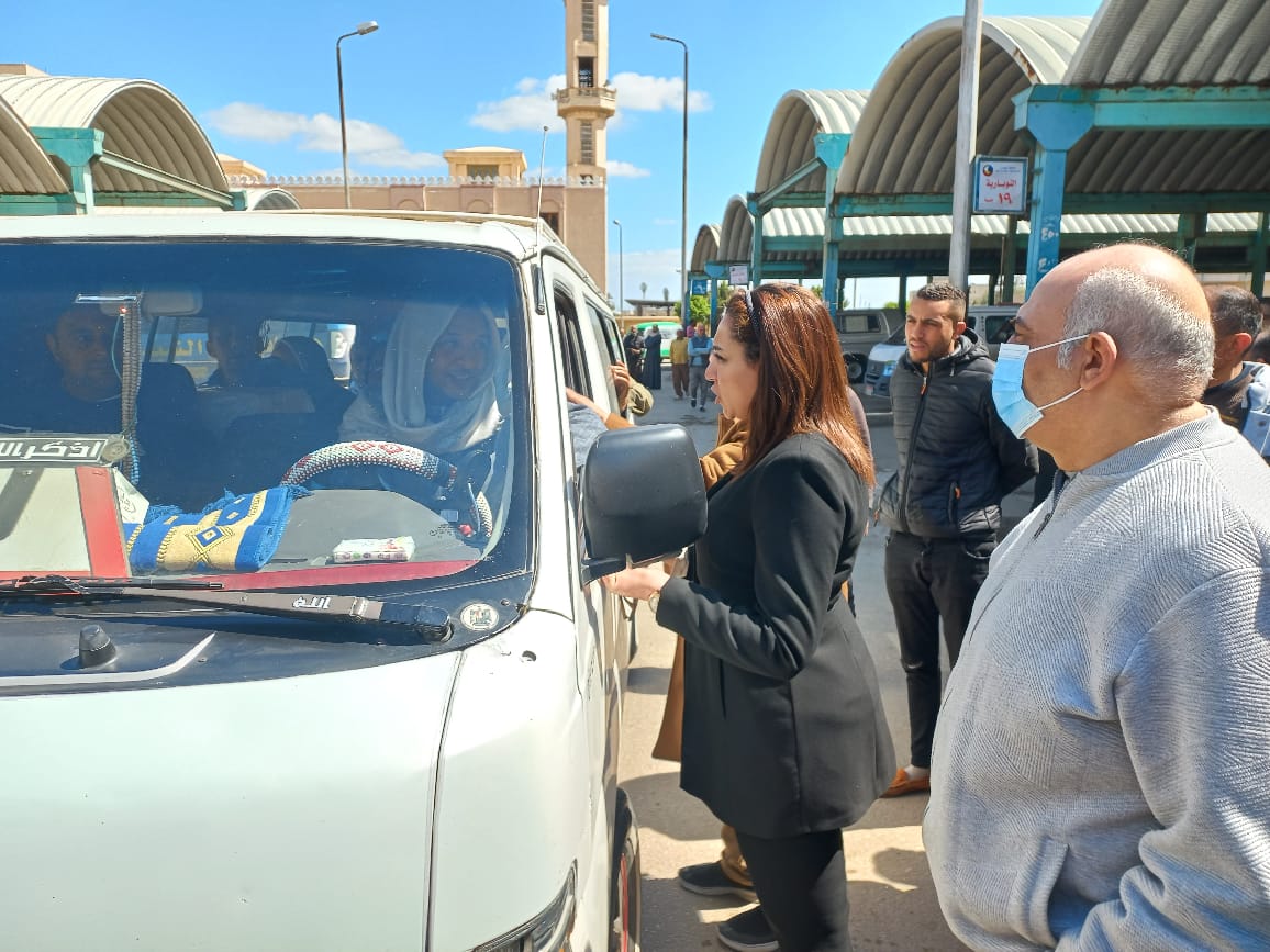 وشددت نائب محافظ على استمرار متابعة انتظام سير العمل بالموقف على جميع الخطوط والتواجد دوريًا على مدار اليوم لمتابعة مدى التزام السائقين بالتعريفة المقررة وخطوط السير بعد تحريك أسعار الوقود، واتخاذ عقوبات رادعة حيال المخالفين، والتعامل بقوة القانون مع أي سائق يمتنع عن تحميل المواطنين أو يغالي في الأسعار ويقوم بمضاعفة التسعيرة مع استمرار التواصل مع المواطنين وتكثيف الحملات المرورية.