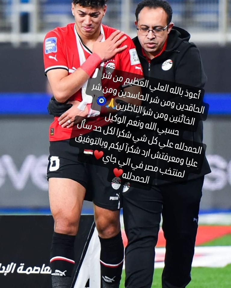 وأضاف: حسبي الله ونعم الوكيل، الحمد لله على كل شيء، وشكرًا لكل حد سأل عليا ومعرفتش أرد، شكرًا ليكم وبالتوفيق لمنتخب مصر في اللي جاي، والحمد لله.