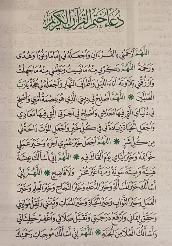 - اللهم اجعلها ختمةَ مباركة، وتلاوة نافعة، يا رب العالمين