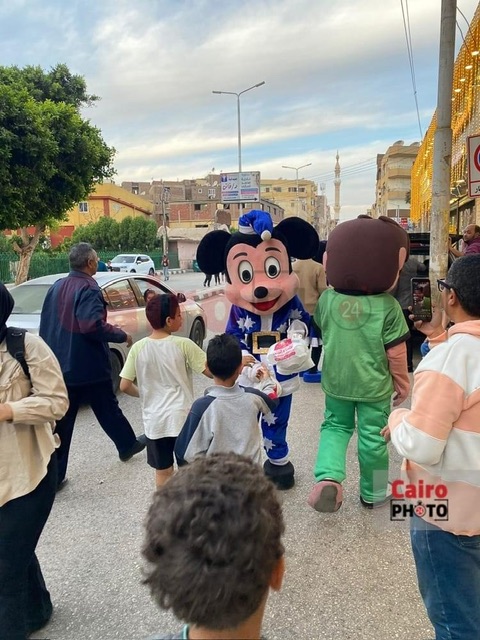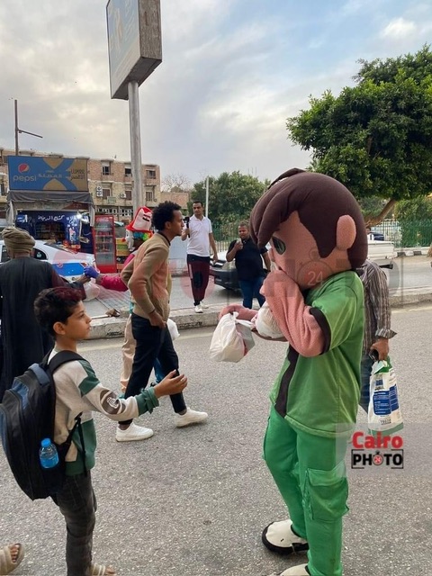 شخصيات كرتونية محببة توزع الوجبات والعصائر بشوارع الأقصر