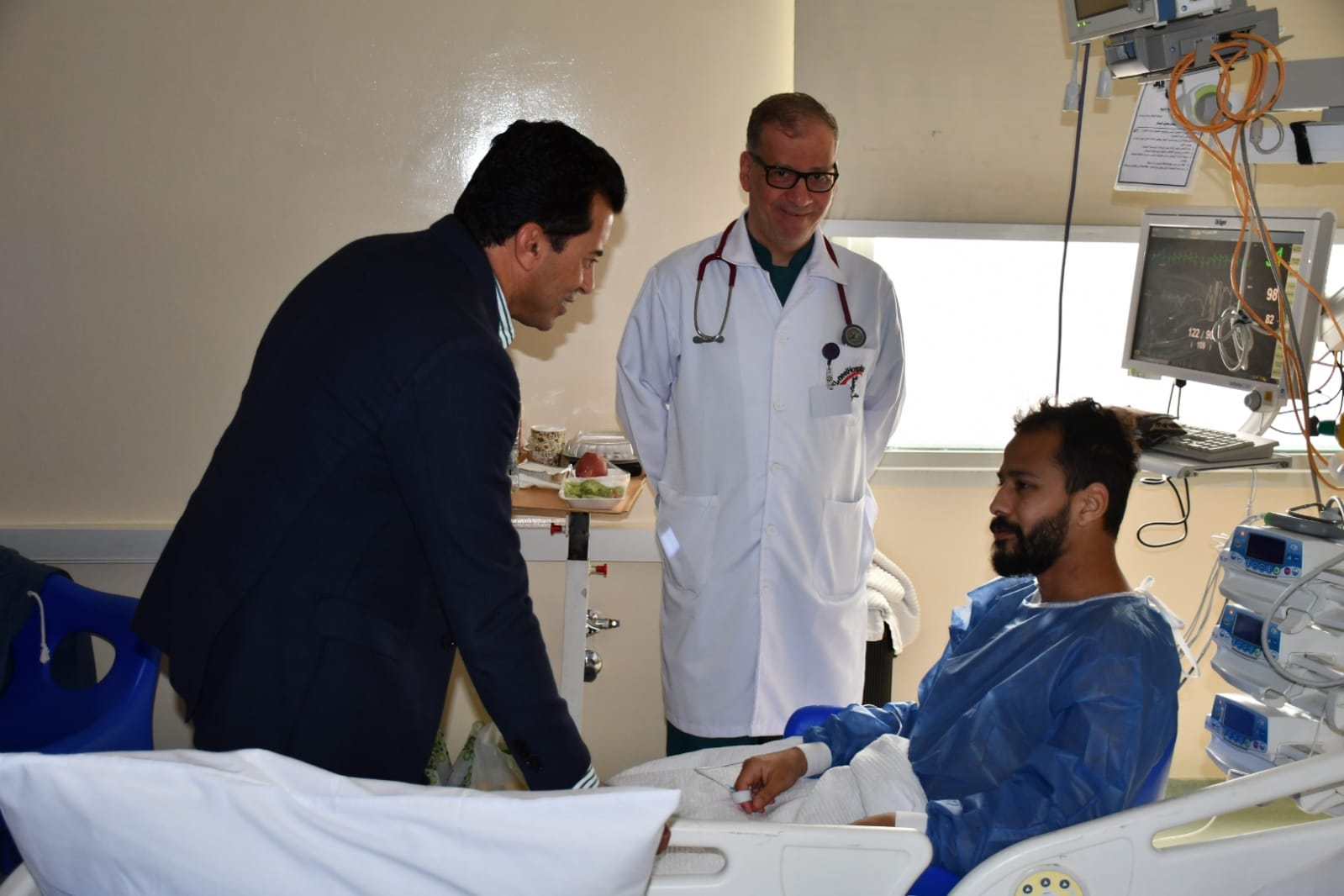 حرص الدكتور أشرف صبحي وزير الرياضة على زيارة اللاعب احمد رفعت لاعب مودرن فيوتشر،اليوم السبت، بمستشفى وادي النيل بالقبة؛ للاطمئنان على حالته الصحية وذلك برفقة الدكتور حازم خميس رئيس المستشفى.