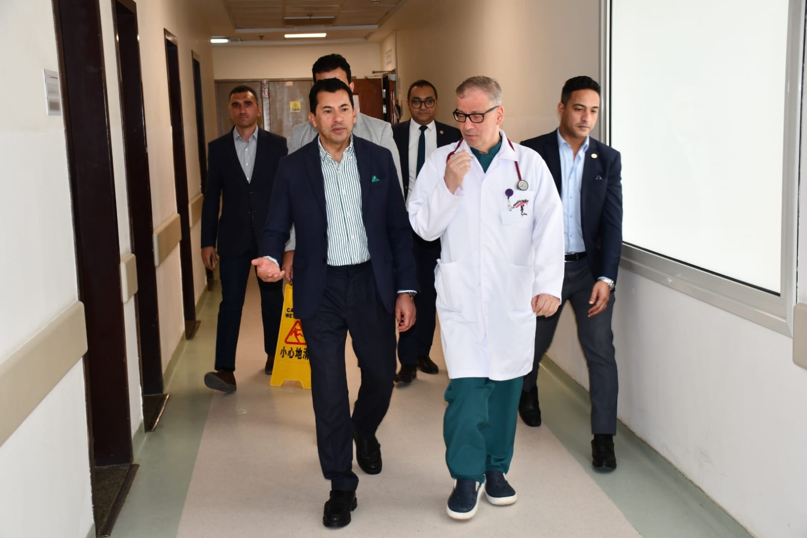 واطلع الوزير على تفاصيل تطورات الحالة الصحية للاعب أحمد رفعت بعد استقرار حالته، والمرحلة الحالية التي يخضع لها اللاعب من ملاحظة وفحوصات وتحاليل لاستكمال مرحلة العلاج، وعناية من قِبل الأطقم الطبية بالمستشفى التى توفر كافة الخدمات والمستلزمات والأدوية للاعب.