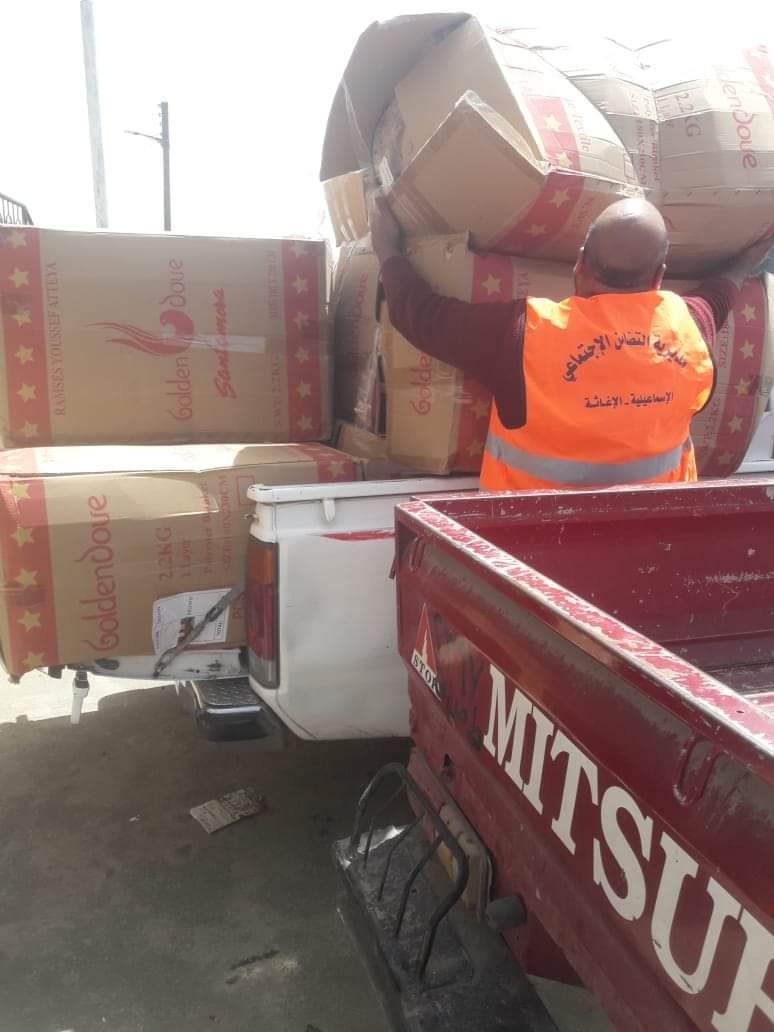 حيث أرسلت مديرية التضامن الاجتماعي بالإسماعيلية برئاسة الدكتور أحمد عبد الرحمن بطاطين وكراتين مواد غذائية كما تم الاتفاق على توفير 2000 وجبة من خلال الجمعيات الاهلية.