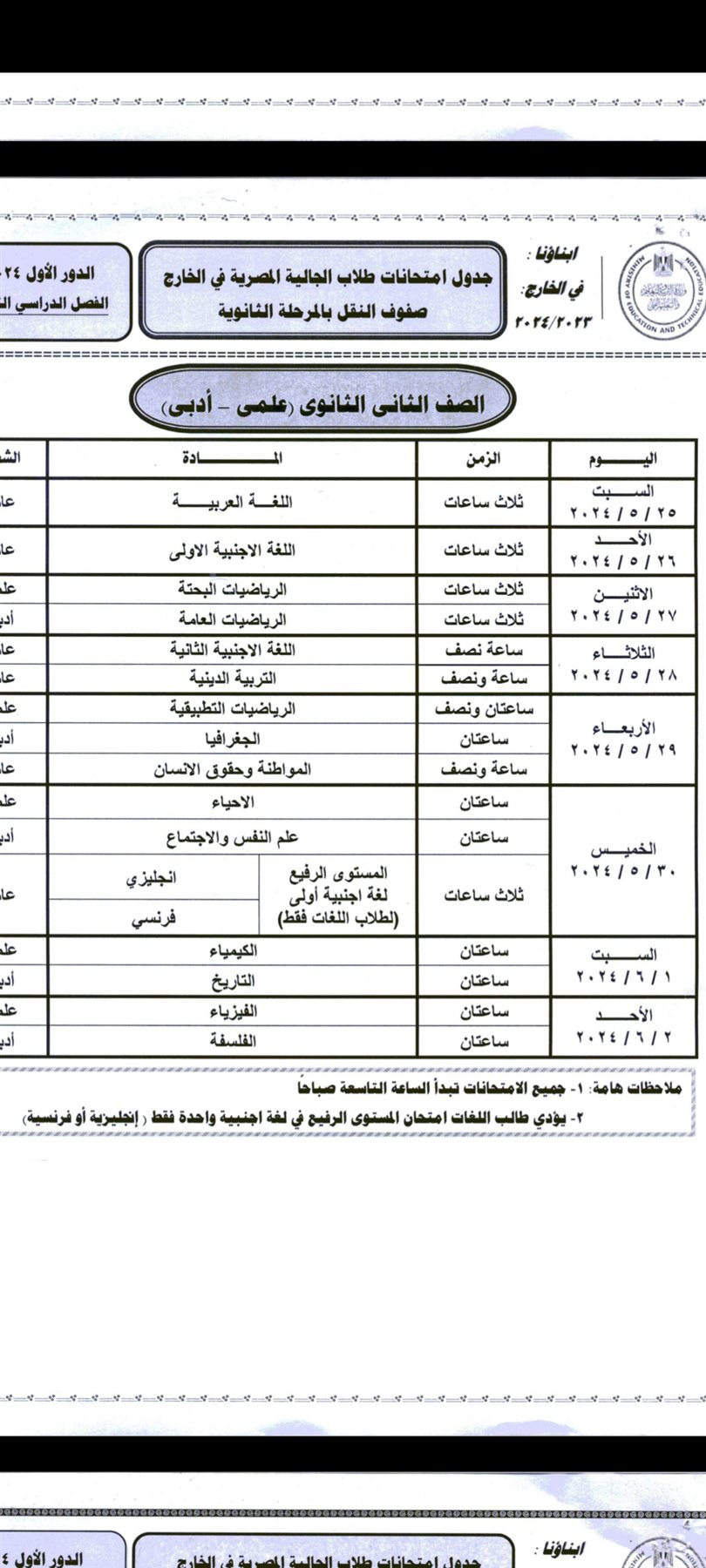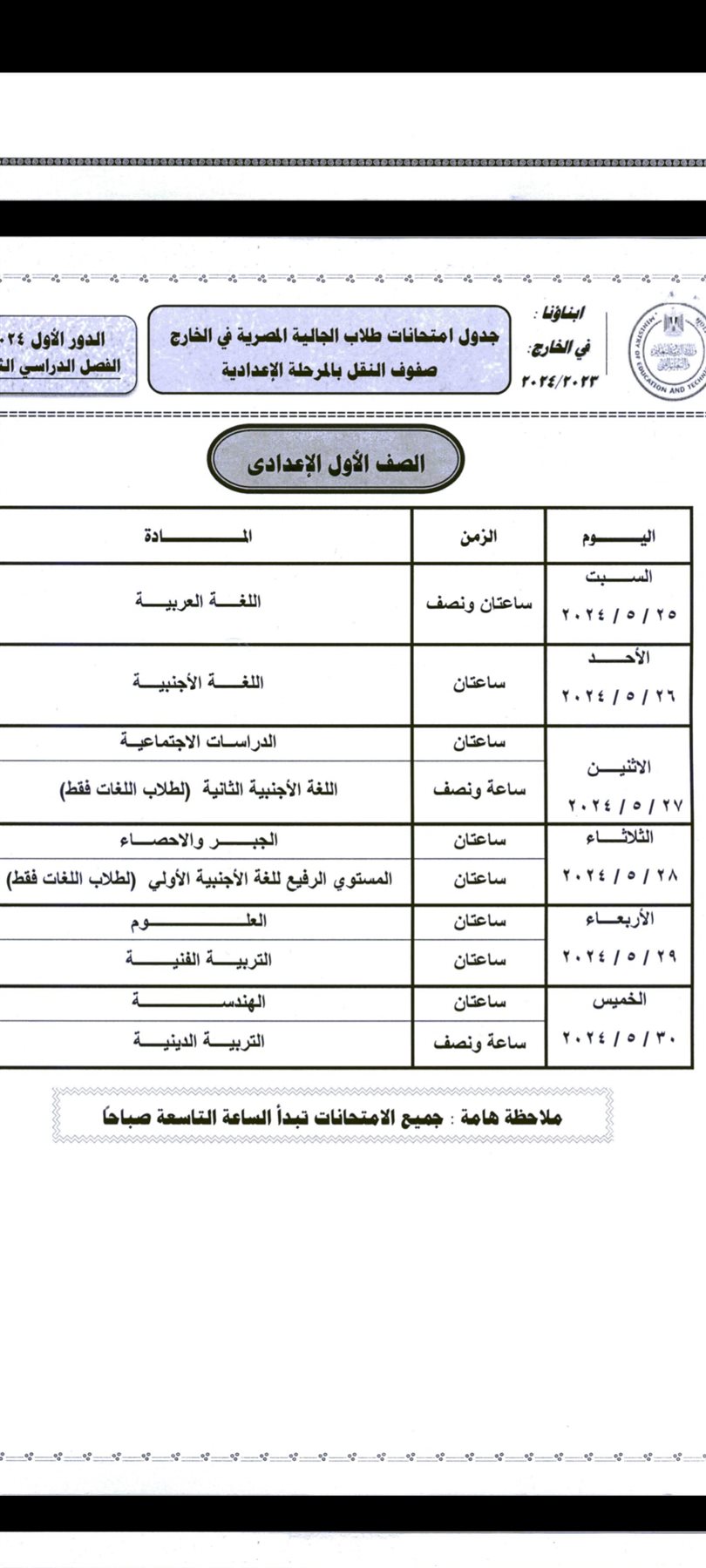 ننشر جداول امتحانات أبنائنا في الخارج 2024