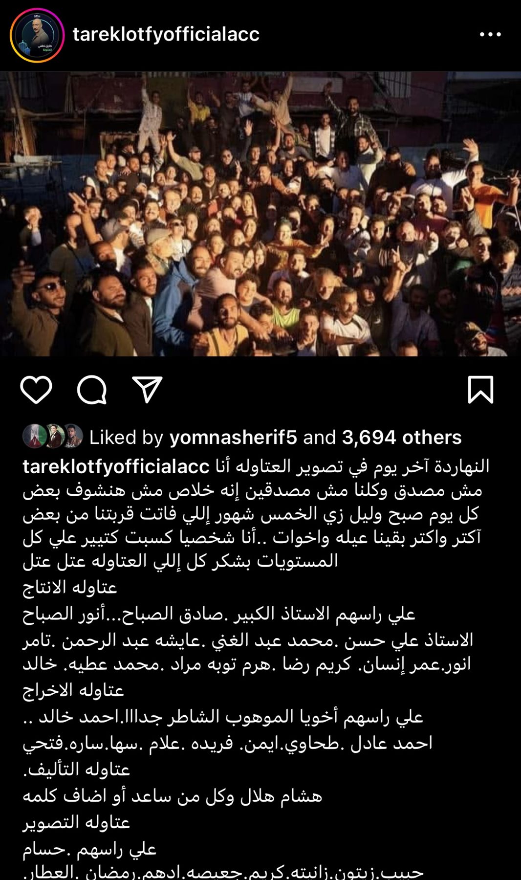 طارق لطفي بعد انتهاء تصوير العتاولة: مش مصدق إننا مش هنشوف بعض تاني