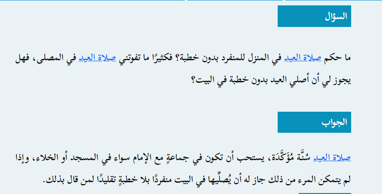 ونختم لكم الإجابة على سؤال هل يجوز صلاة العيد في البيت؟ بالحديث المروي عن أنس بن مالك رضي الله تعالى عنه قال: «قدمَ رسولُ اللَّهِ صلى الله عليه وسلم المدينةَ ولَهم يومانِ يلعبونَ فيهما، فقالَ: ما هذانِ اليومانِ؟ قالوا: كنَّا نلعبُ فيهما في الجاهليَّةِ، فقالَ رسولُ اللَّهِ صلى الله عليه وسلم: إنَّ اللَّهَ قد أبدلَكم بِهما خيرًا منهما يومَ الأضحى ويومَ الفطرِ».
