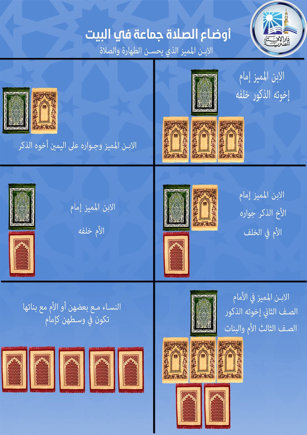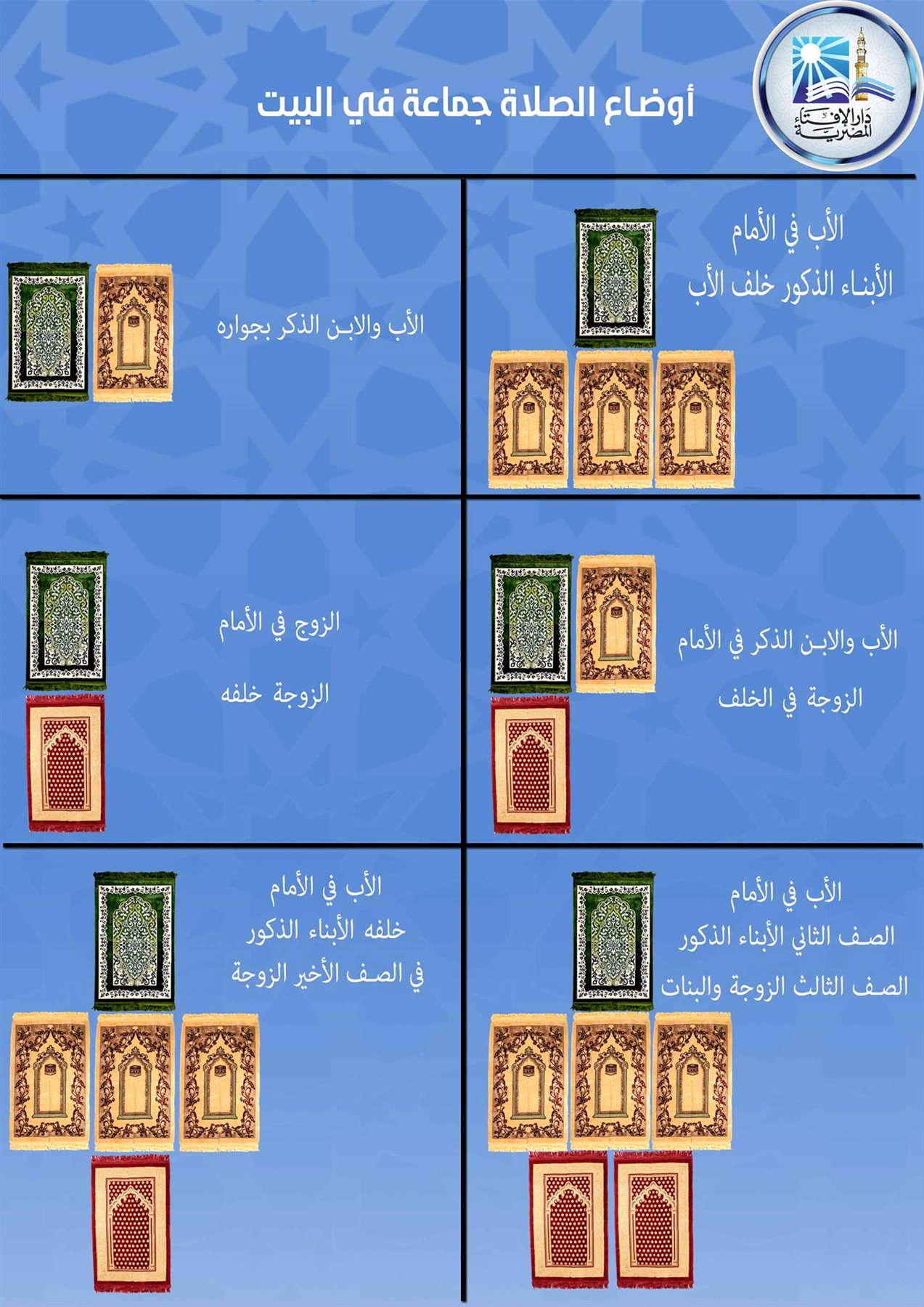 ولمن عجز عن صلاة العيد في المسجد، يمكنه الأخذ برأي جواز صلاة العيد في البيت لما روي عن أنس رضي الله عنه أنه كان إذا فاتته صلاة العيد مع الإمام جمع أهله ومواليه، ثم قام عبد الله بن أبي عتبة مولاه فيصلي بهم ركعتين، يكبر فيهما، ونوضح لكم أوضاع الصلاة جماعة في المنزل بالصور وفقا لدار الإفتاء المصرية كالتالي: