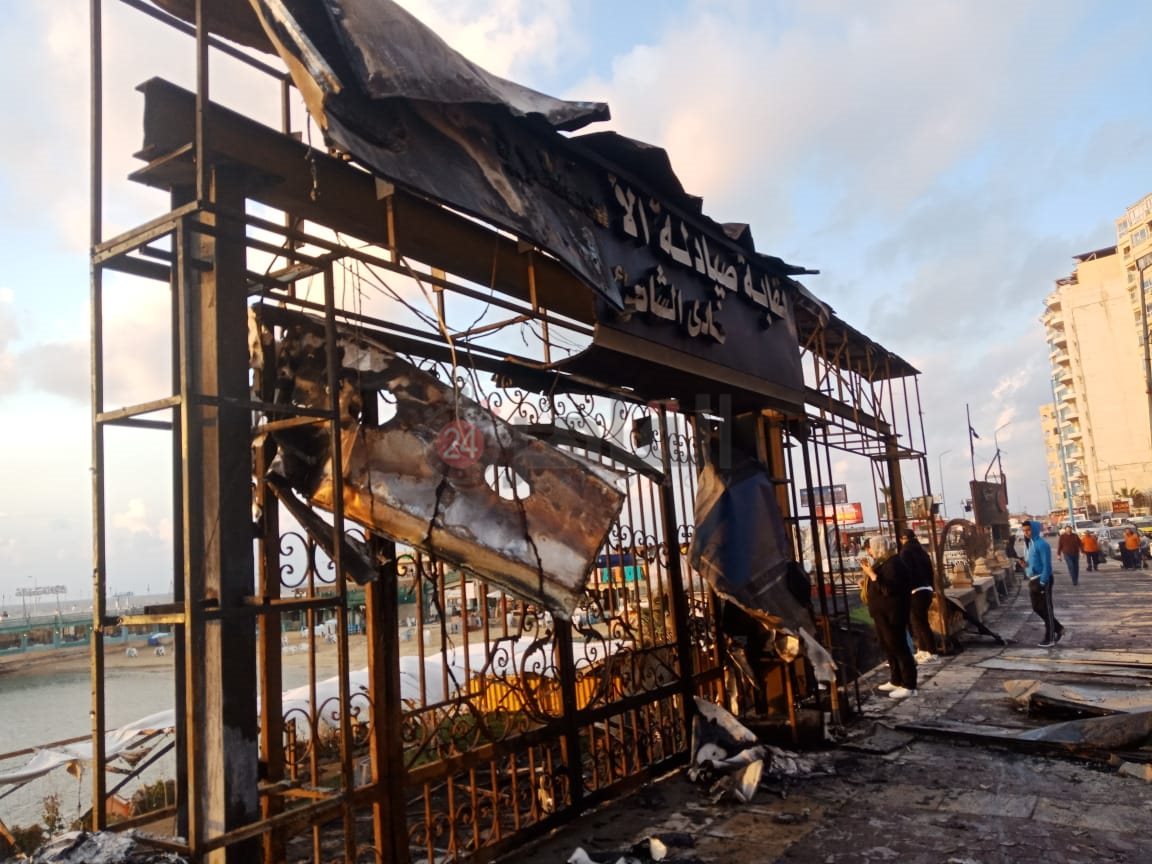 ننشر الصور الأولى لحريق نادي صيادلة الإسكندرية وكافيتريات مجاورة له