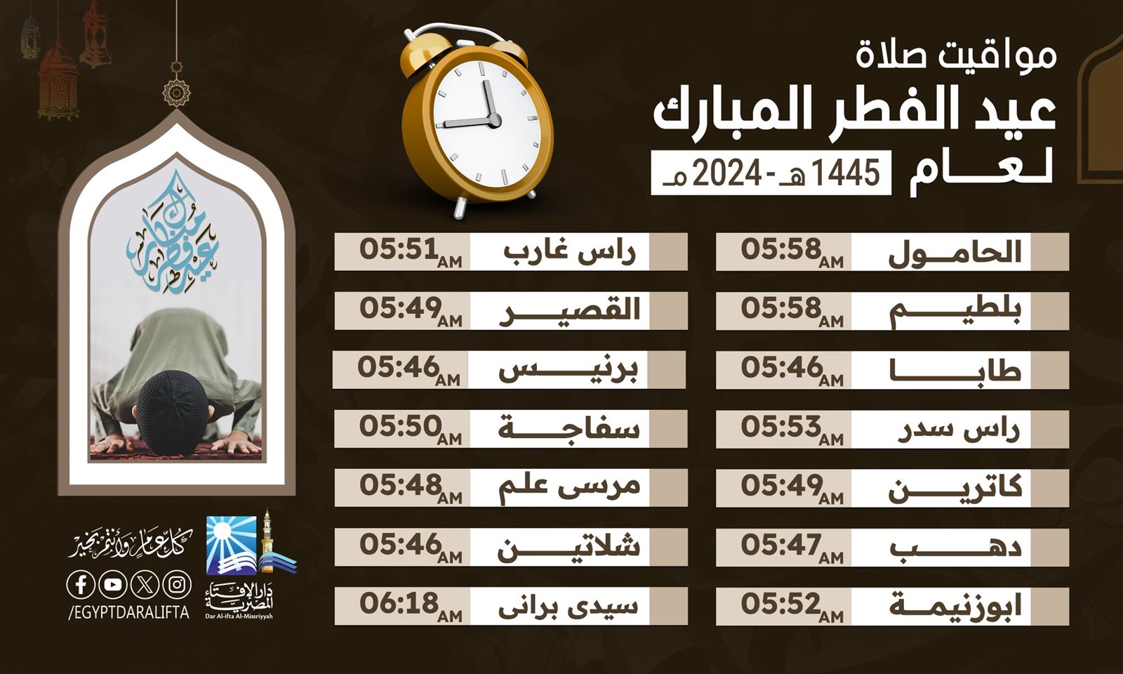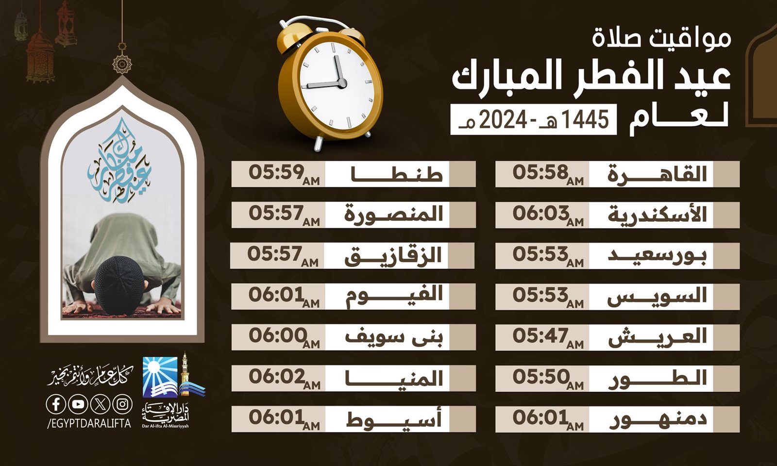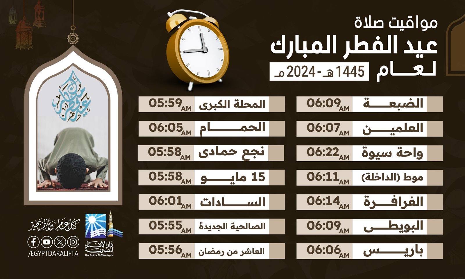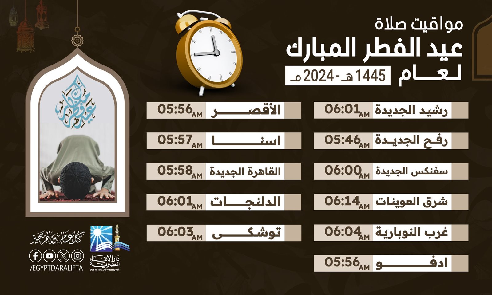 العاصمة الإدارية 5:56.. الإفتاء تعلن مواعيد صلاة عيد الفطر في المدن الجديدة والمحافظات