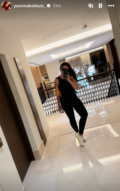 نشرت الفنانة ياسمين عبد العزيز، صورا لها عبر خاصية ستوري عبر موقع تبادل الصور والفيديوهات إنستجرام، خلال وجودها في صالة الجيم بأحد الفنادق، وذلك خلال قضائها إجازة عيد الفطر المبارك خارج البلد.