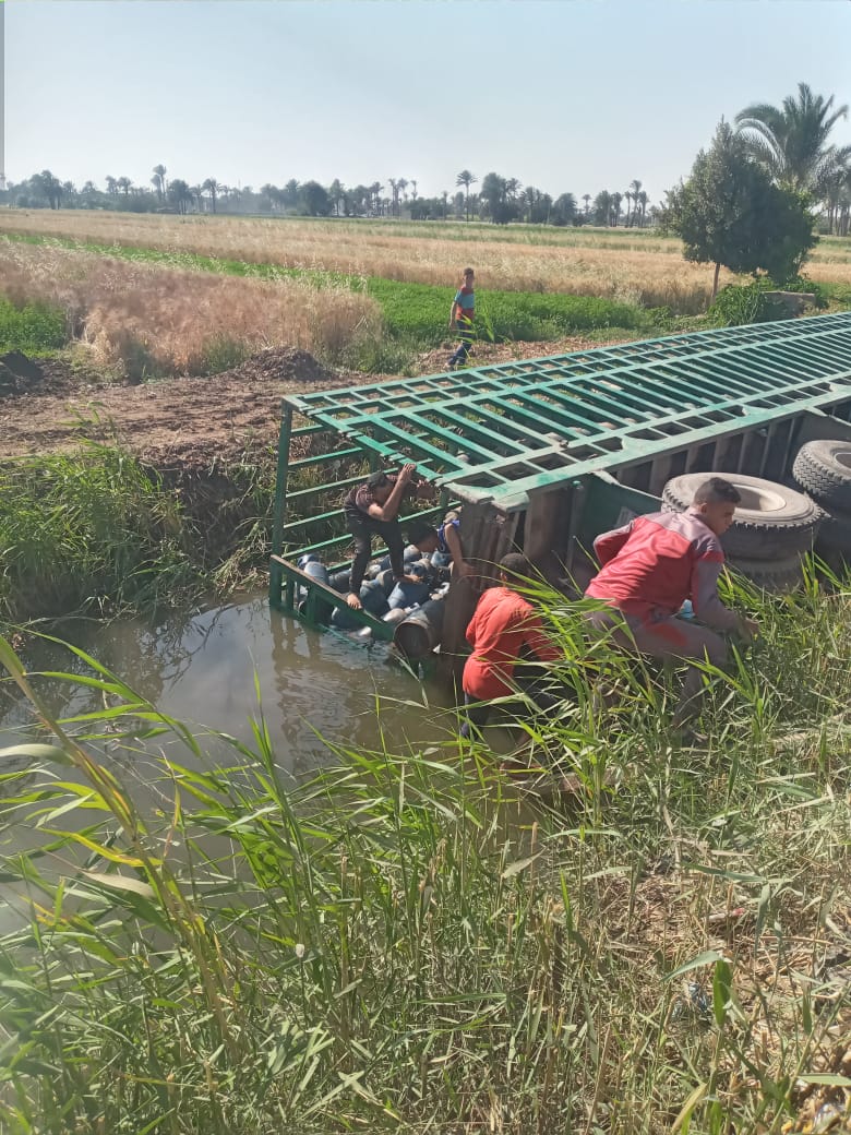 شهدت قرية ابشادات بمركز ملوي التابع لمحافظة المنيا حادث انقلاب مقطورة محملة 900 اسطوانة بوتاجاز.