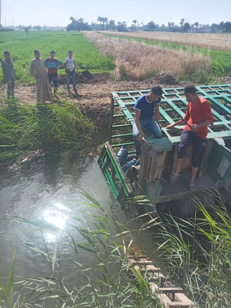 وتم تفريغ الحمولة من قبل عاملين بالشركة على سيارات تابعة لهم، وتم الدفع بونش لانتشال السيارة من المياه، ولا توجد أي إعاقة بالطريق.