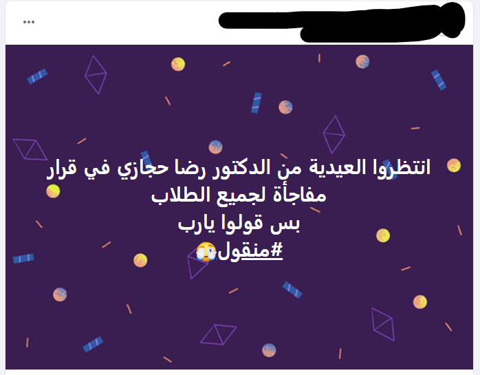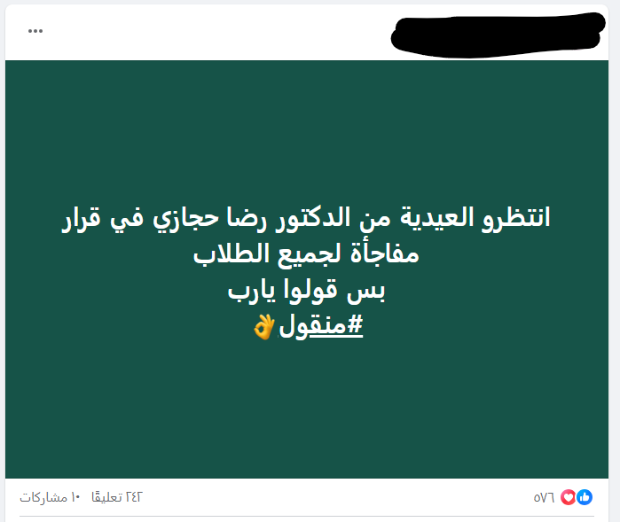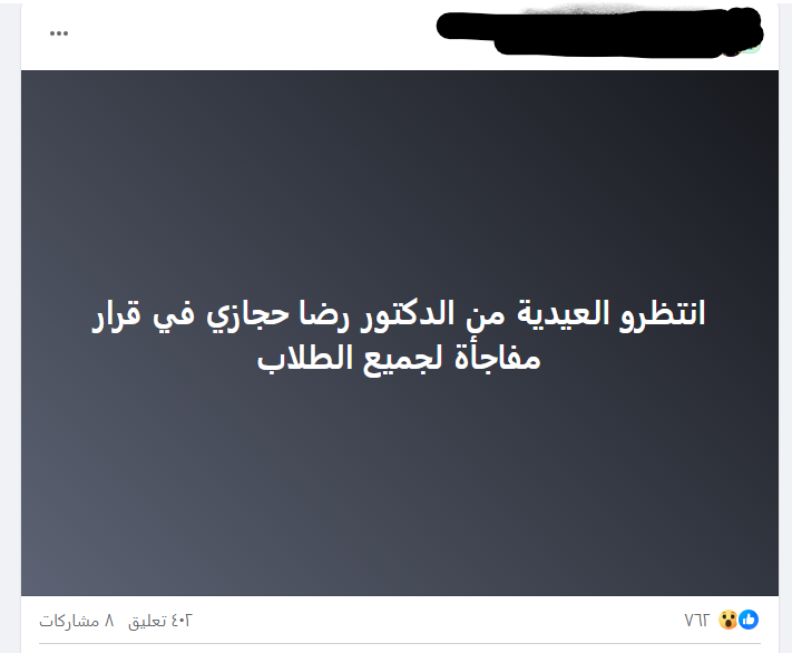ووفقًا للجروبات، فيقول ناشر الخبر: "انتظروا العيدية من الدكتور رضا حجازي، وزير التعليم، في قرار مفاجأة لجميع الطلاب"، وهو ما ربطه البعض بامتحانات الفصل الدراسي الثاني، والتي تفصلنا عنها أيام.