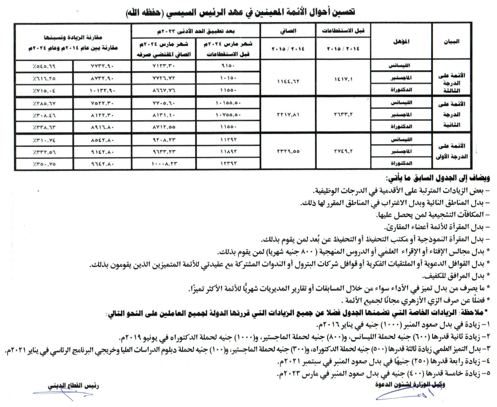 - زيادة في بدل صعود المنبر 1000 جنيه في يناير 2016.