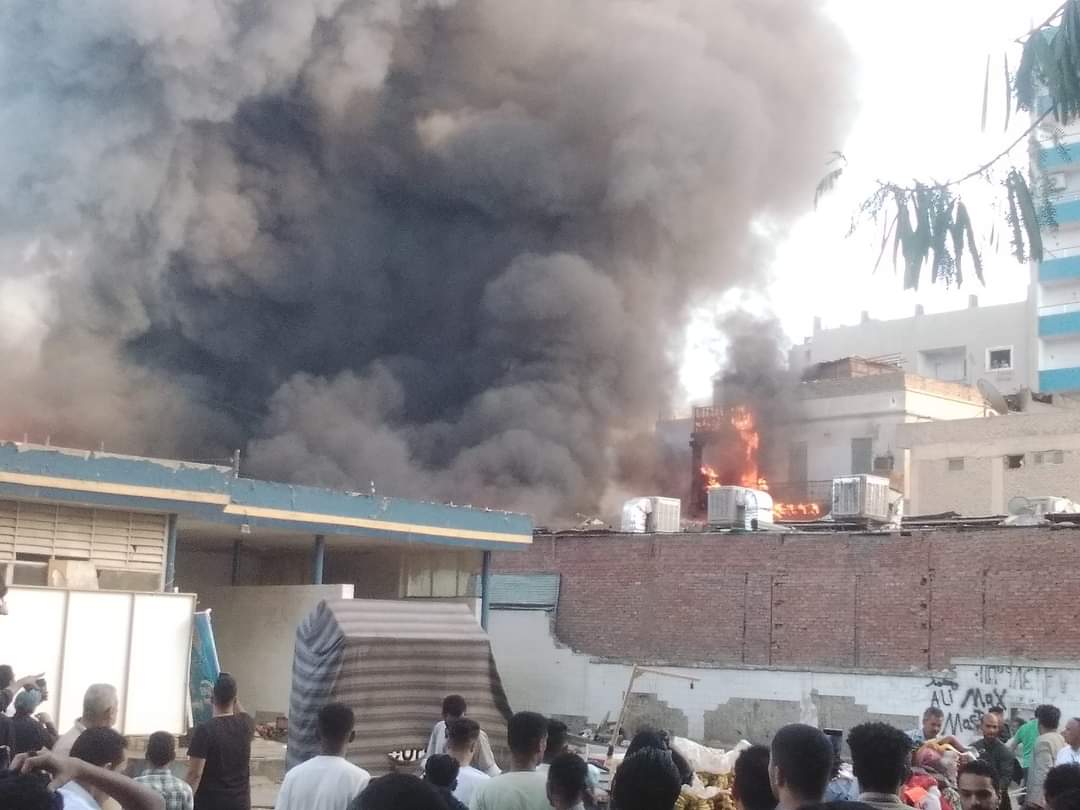 إصابة 7 أشخاص في حريق معرض فيلة بأسوان| صور