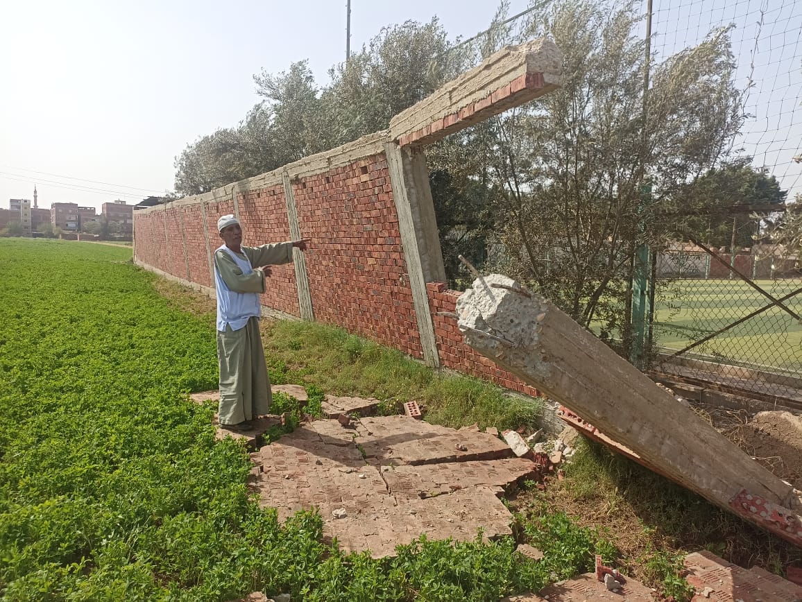 وأضاف: نناشد المسؤولين بسرعة التحرك وإزالة الجزء المتبقي من السور قبل أن يسقط على رؤوس الفلاحين والشباب في ملعب كرة القدم وكذلك سرعة إزالة الكتل الخرسانية التي أتلفت الأرض الملاصقة لملعب مركز الشباب.