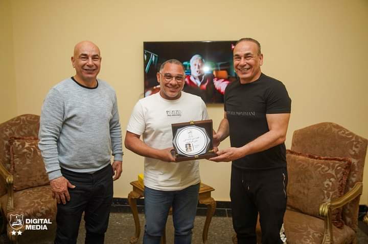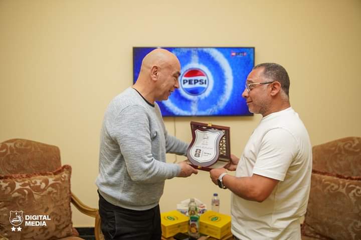 وأهدى الشريعي درع نادي إنبي للتوأم، متمنيًا للجهاز الفني المصري خالص التوفيق والنجاح خلال الفترة المقبلة، حيث حمل درع نادي إنبي شعار كلنا في ظهرك يا عميد.
