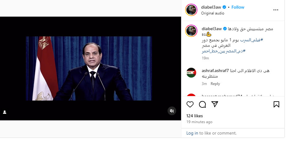 ونشر دياب، فيديو من البرومو التشويقي، عبر حسابه الشخصي بموقع تبادل الصور والفيديوهات انستجرام، وعلق قائلًا: مصر مبتسيبش حق ولادها.. فيلم السرب يوم 1 مايو بجميع دور العرض في مصر.