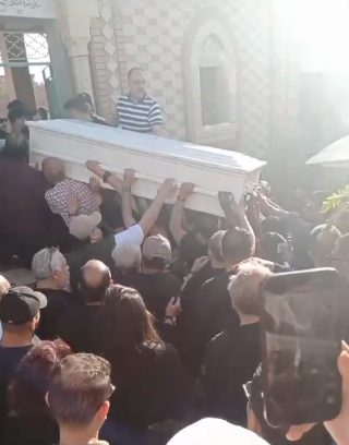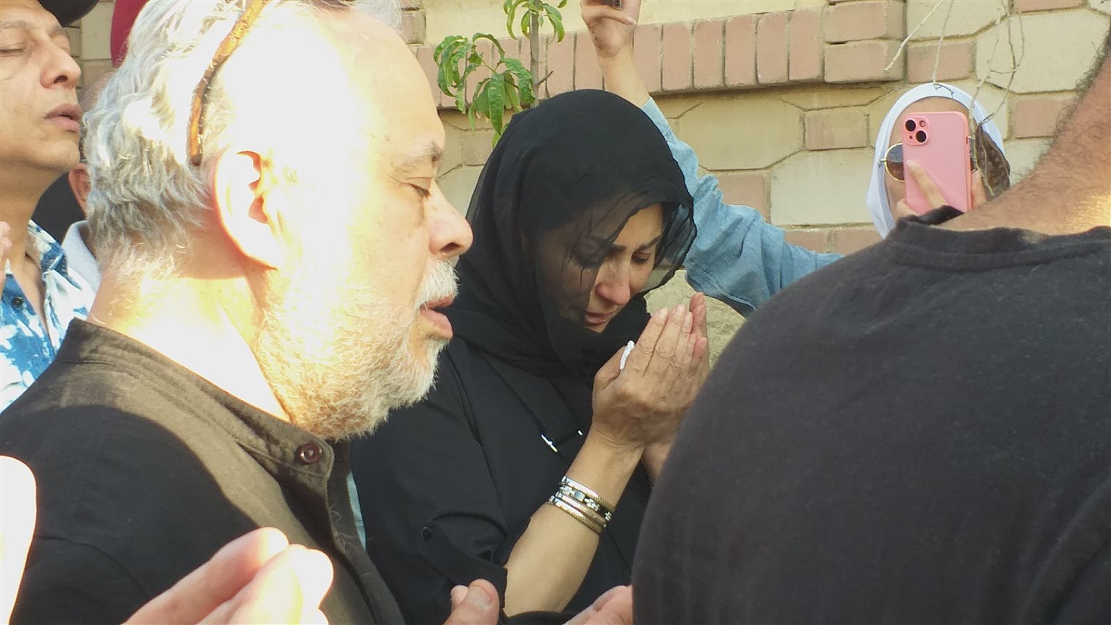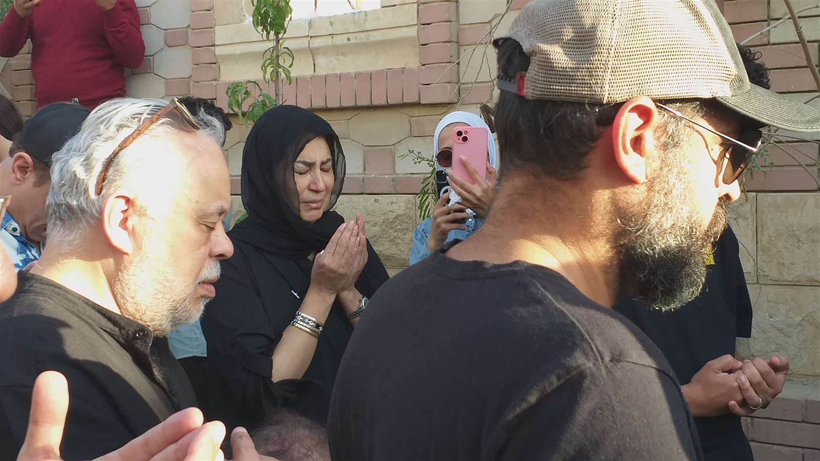 ريهام عبد الغفور تبكي في جنازة صلاح السعدني