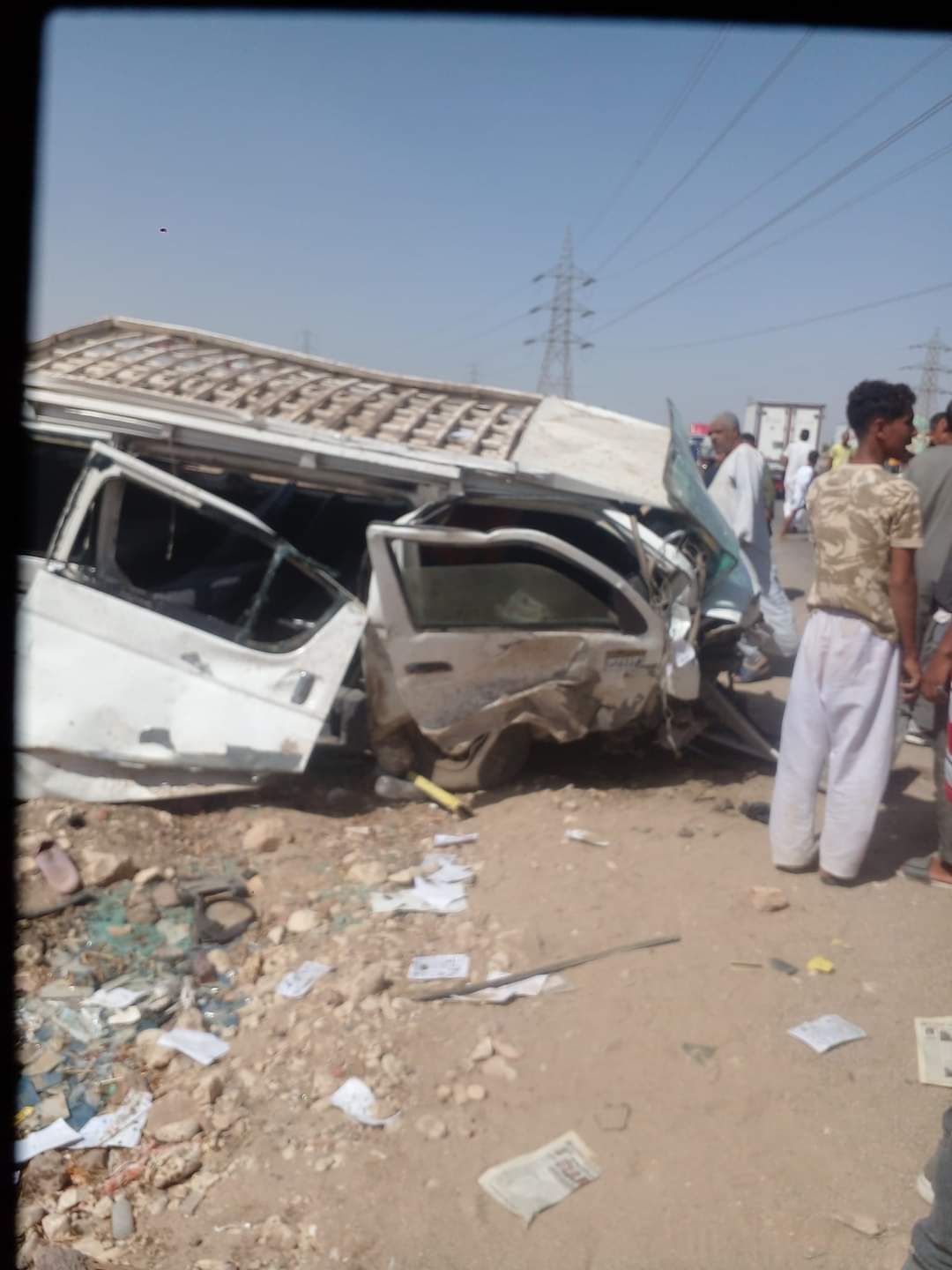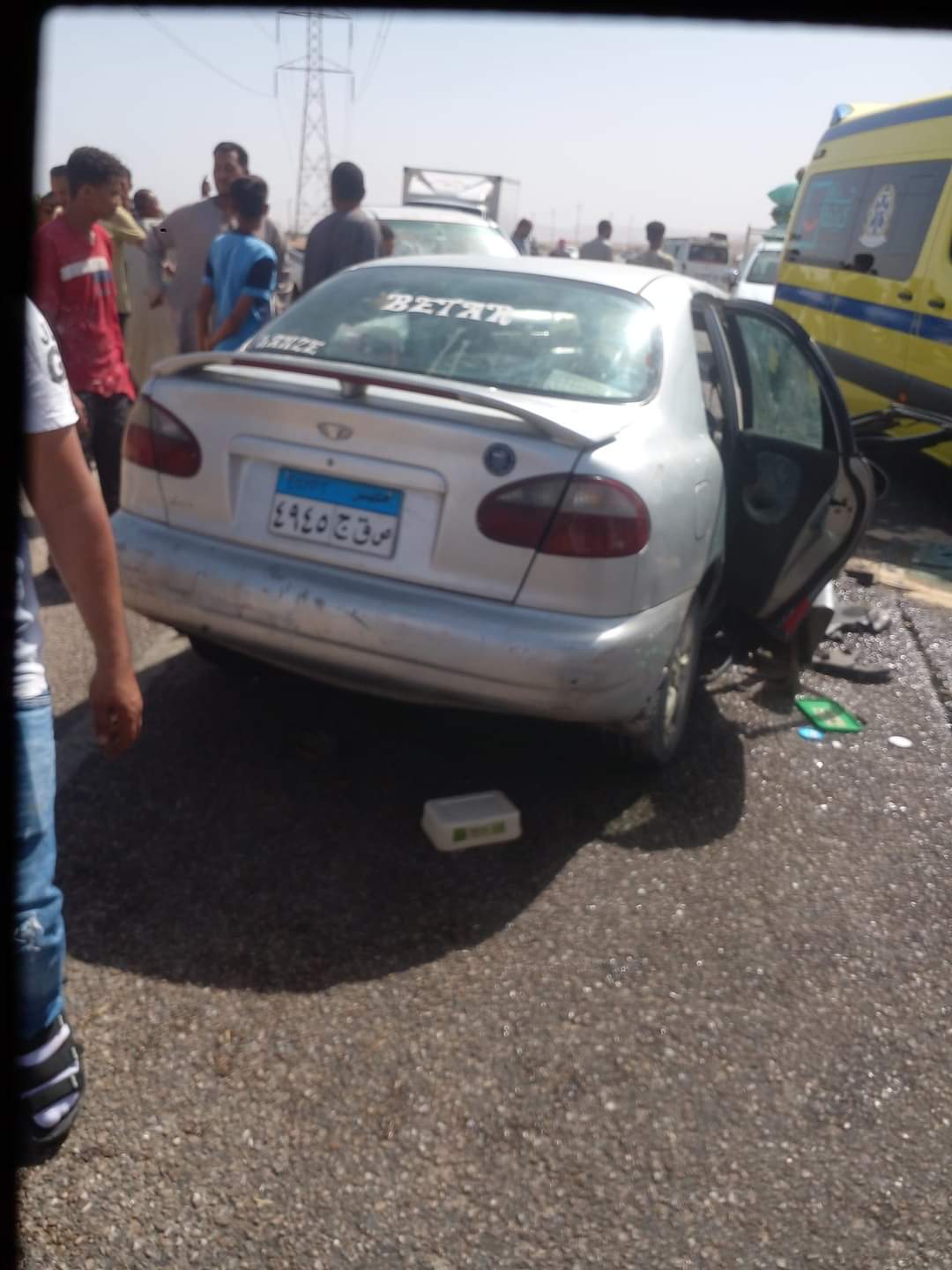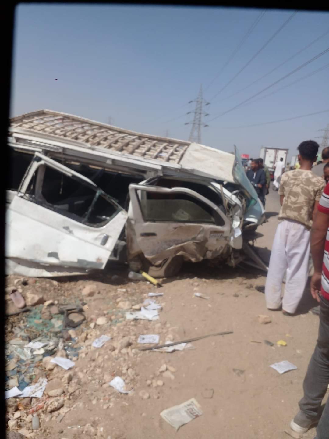 إصابة 11 شخصا في تصادم سيارتين على صحراوي قنا