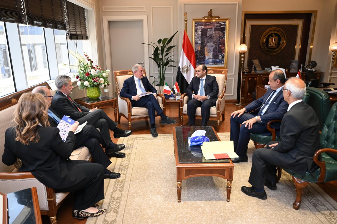 عقد المهندس أحمد سمير، وزير التجارة والصناعة، جلسة مباحثات موسعة مع أدولفو أورسو، وزير المشروعات الإيطالي الذي يزور مصر حاليا على رأس وفد رفيع المستوى، يضم مسئولين حكوميين وممثلين عن القطاع الخاص.