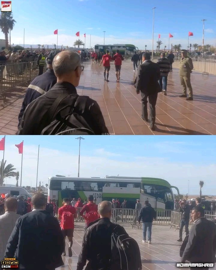 وصلت بعثة نادي اتحاد العاصمة الجزائري إلى مطار وجدة في المغرب، قبل قليل اليوم الجمعة، وسط ترحيب كبير بالورد والتمور والحليب.