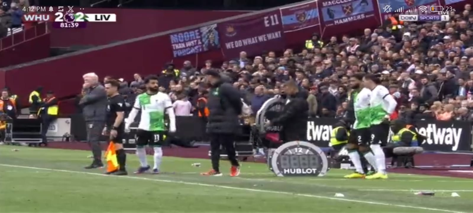 وظهر الغضب على محمد صلاح قبل نزوله بلحظات بعد هدف ويست هام الثاني والتعادل فى مباراة ليفربول، وخلال الحديث مع كلوب قبل المشاركة فى المباراة، قبل نهاية اللقاء بدقائق، نشبت مشادة كلامية قوية ين الثنائي.