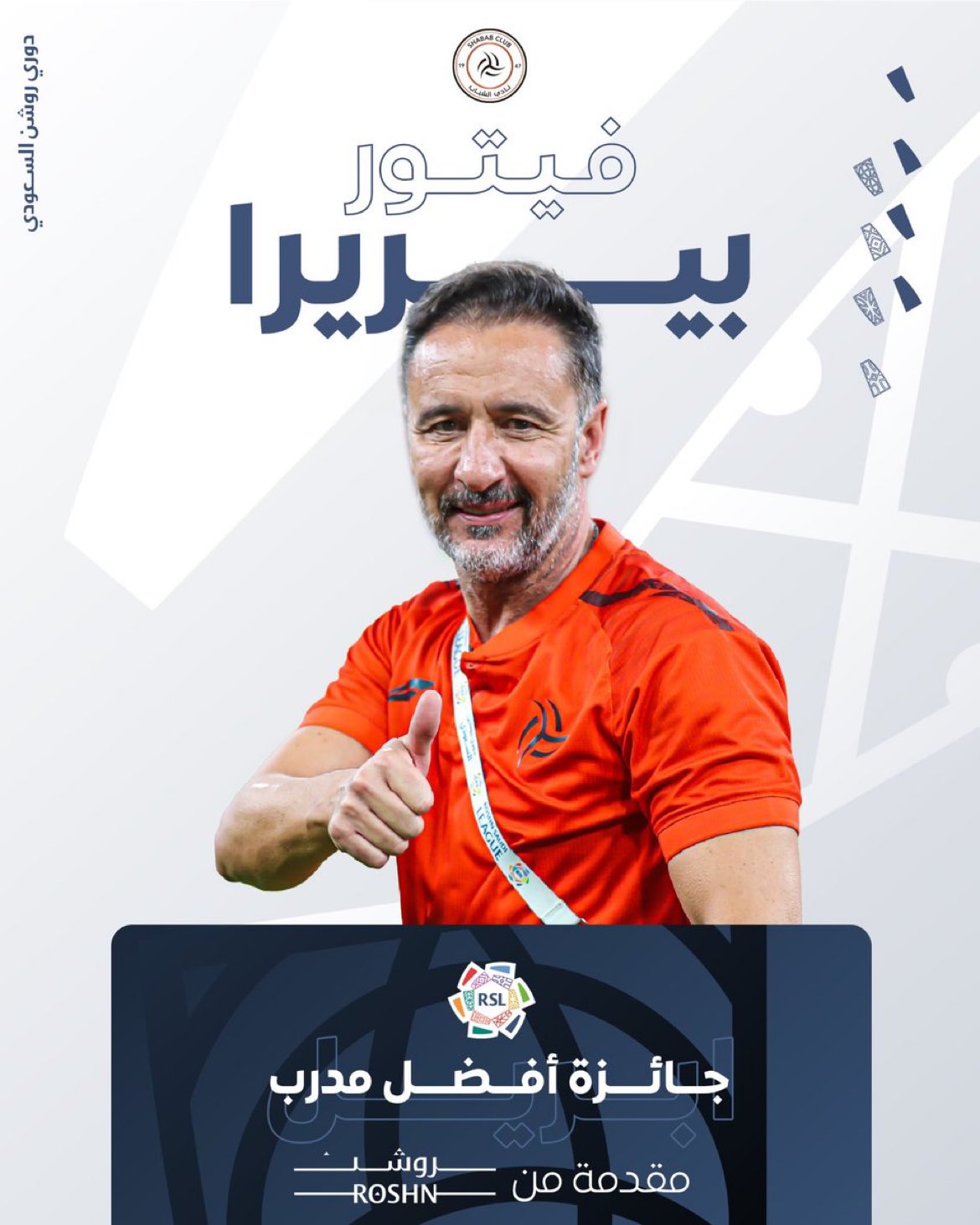 وحصل المدرب البرتغالي فيتور بيريرا مدرب نادي الشباب السعودي جائزة أفضل مدرب في شهر أبريل في دوري روشن، بعدما حقق العديد من الإنجازات في هذا الشهر رفقة فريقه.