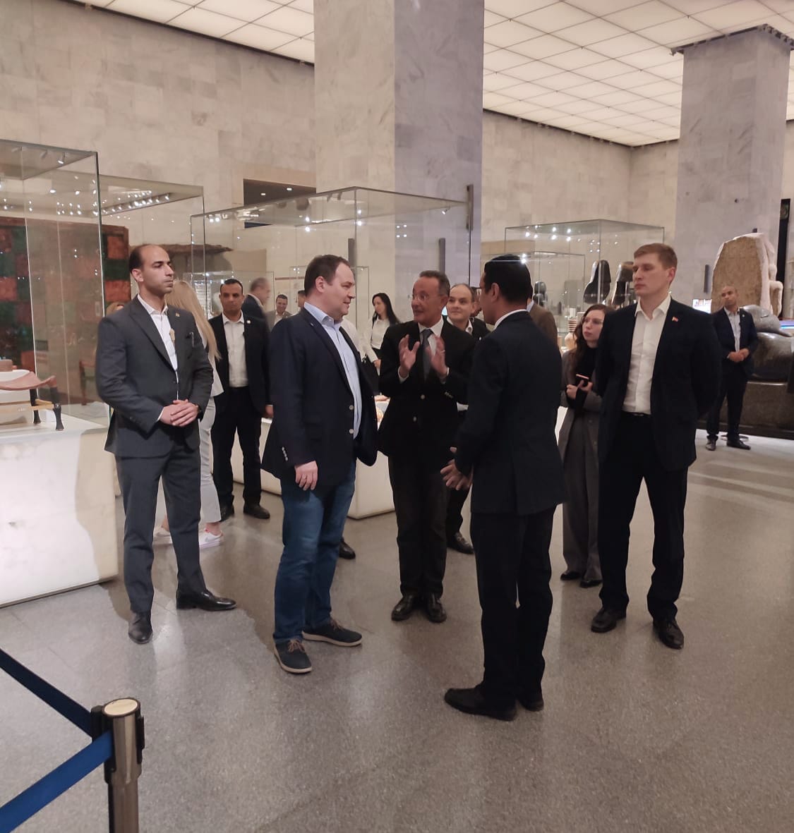 وخلال زيارته للمتحف القومي للحضارة المصرية، كان في استقباله الدكتور أحمد غنيم، الرئيس التنفيذي لهيئة المتحف، حيث رحب به والوفد المرافق وقدم لهم نبذة عن الموقع الفريد للمتحف وتاريخه ودوره الثقافي والمجتمعي، كما حرص الدكتور أحمد غنيم على تقديم هدية تذكارية من المتحف له.