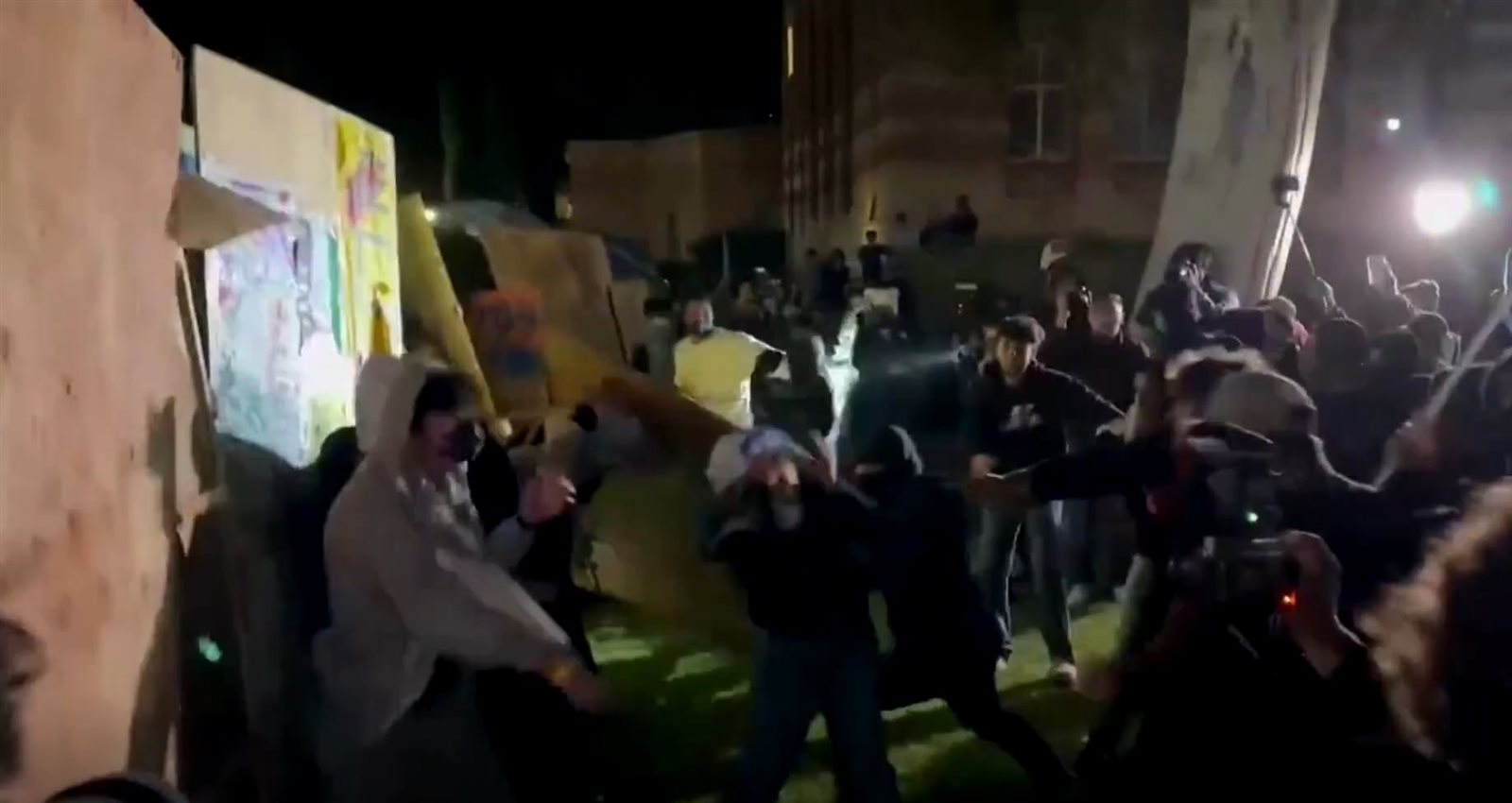 تصاعدت التوترات في الجامعات الأمريكية اليوم الأربعاء، عندما هاجم أنصار مؤيدون لإسرائيل مخيما للمحتجين المؤيدين للفلسطينيين في جامعة كاليفورنيا، بعد ساعات من اعتقال الشرطة نشطاء احتلوا مبنى في جامعة كولومبيا، وسوت مدينة الخيام في حرمها الجامعي بالأرض.