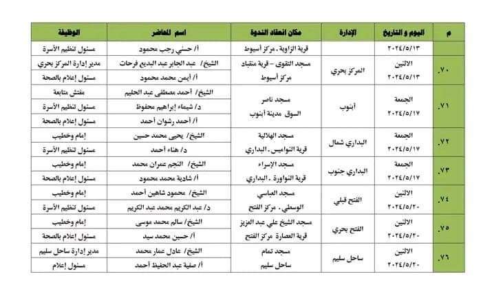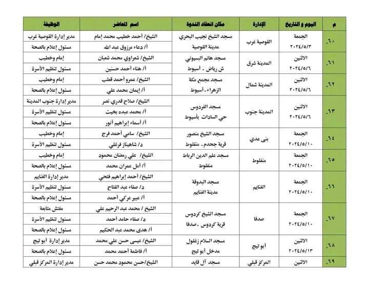 تنظيم 21 ندوة بالمساجد حول قضايا السكان والصحة الإنجابية بأسيوط