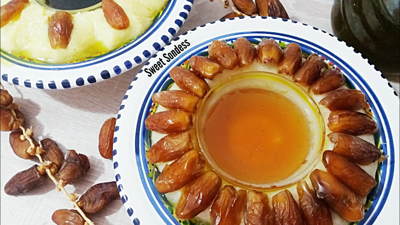 - يتم نزع النواه من التمر ثم ينقع في ماء ملغي لمدة ساعة