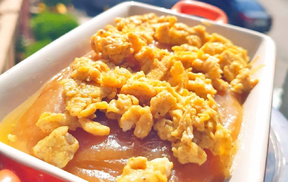 - نضيف المرق الساخن على المزيج السابق، ومن ثم نضع ملعقة العسل الأبيض.