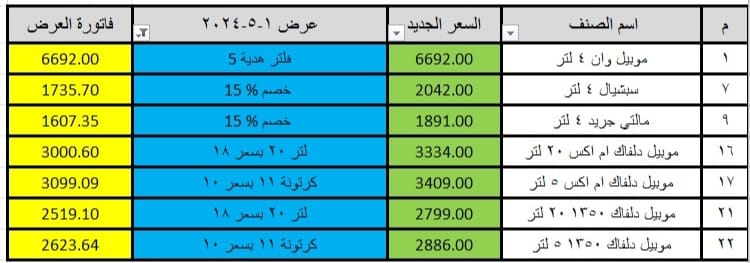 وفق التجار، أقرت شركة موبيل تخفيضات بنحو 15% على عدد كبير من أصناف زيوت السيارات التابعة للشركة لشهر مايو الحالي.