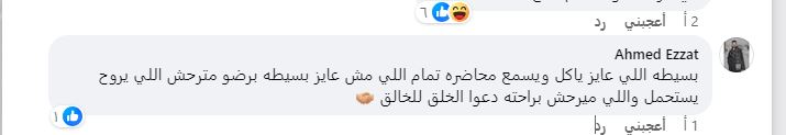 بينما على آخر: بسيطة اللي عايز ياكل ويسمع محاضرة تمام اللي مش عايز بسيطة برضو مترحش اللي يروح يستحمل، واللي ميرحش براحته دعوا الخلق للخالق.