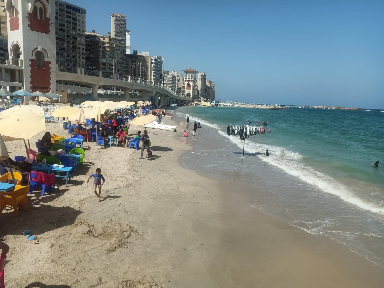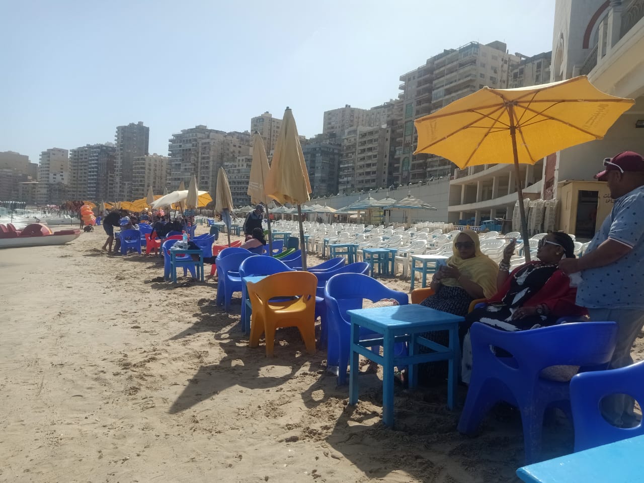 إقبال المواطنين على شواطئ الإسكندرية للاستمتاع باستقرار الطقس وقضاء عطلة شم النسيم| صور