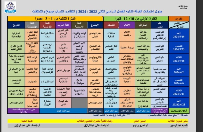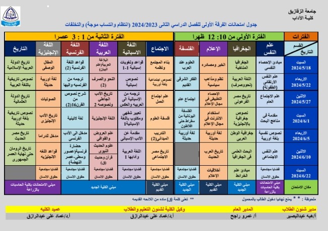 تبدأ 18 مايو.. آداب الزقازيق تعلن جداول امتحانات نهاية العام لجميع الفرق الدراسية| صور