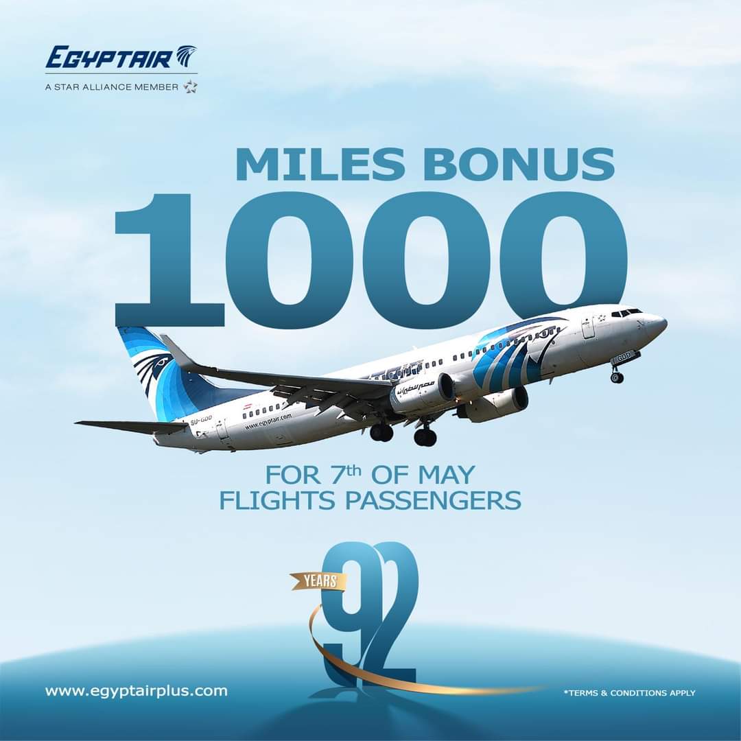 وأضافت: كما تقدم الشركة أيضا فرصة للفوز بألف ميل إضافي في حالة حجز تذكرة السفر يوم 7 مايو لمسافري الرحلات الدولية فقط.