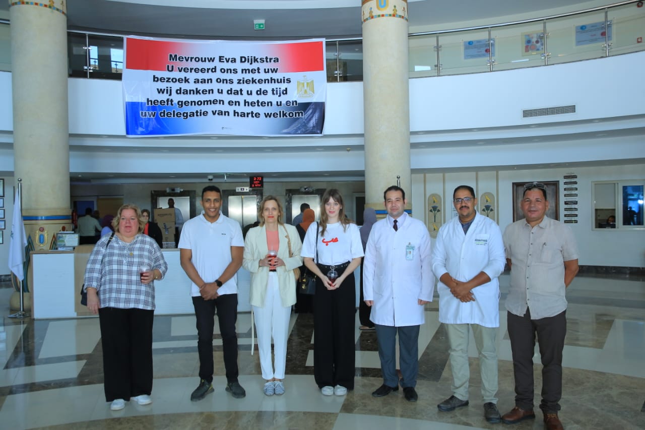 ورافق فريق العلاقات العامة وقيادات المستشفى، نائب السفير الهولندي والقائم بأعمال السفارة الهولندية بالقاهرة وكذلك القائم بأعمال السفارة الهولندية بالأقصر، فى جولة على أقسام المستشفى المختلفة، ومشاهدة التجهيزات والأجهزة القياسية العالمية بها.