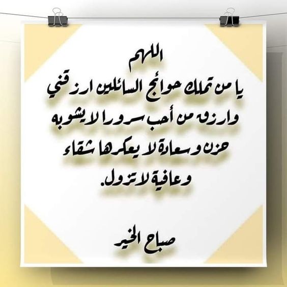 - اللهم في هذا الصباح سخر لنا ما تعلم أنه خير لنا، اللهم قلوبنا بين يديك فارزقها الثبات والراحة.