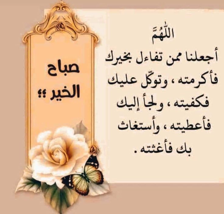 وأجمل صباح الخير دعاء الفجر، ما يقوله المسلم بجوامع الدعاء المأثور عن النبي صلى الله عليه وسلم، "اللهُمَّ إِنِّي أَسْأَلُكَ مِنَ الْخَيْرِ كُلِّهِ عَاجِلِهِ وَآجِلِهِ، مَا عَلِمْتُ مِنْهُ وَمَا لَمْ أَعْلَمْ، وَأَعُوذُ بِكَ مِنَ الشَّرِّ كُلِّهِ، عَاجِلِهِ وَآَجِلِهِ مَا عَلِمْتُ مِنْهُ، وَمَا لَمْ أَعْلَمْ، اللهُمَّ إِنِّي أَسْأَلُكَ مِنْ خَيْرِ مَا سَأَلَكَ عَبْدُكَ وَنَبِيُّكَ مُحَمَّدٌ صَلَّى اللهُ عَلَيْهِ وَسَلَّمَ، وَأَعُوذُ بِكَ مِنْ شَرِّ مَا عَاذَ مِنْهُ عَبْدُكَ وَنَبِيُّكَ، اللهُمَّ إِنِّي أَسْأَلُكَ الْجَنَّةَ وَمَا قَرَّبَ إِلَيْهَا مِنْ قَوْلٍ أَوْ عَمَلٍ، وَأَعُوذُ بِكَ مِنَ النَّارِ وَمَا قَرَّبَ إِلَيْهَا مِنْ قَوْلٍ أَوْ عَمَلٍ، وَأَسْأَلُكَ أَنْ تَجْعَلَ كُلَّ قَضَاءٍ تَقْضِيهِ لِي خَيْرًا".