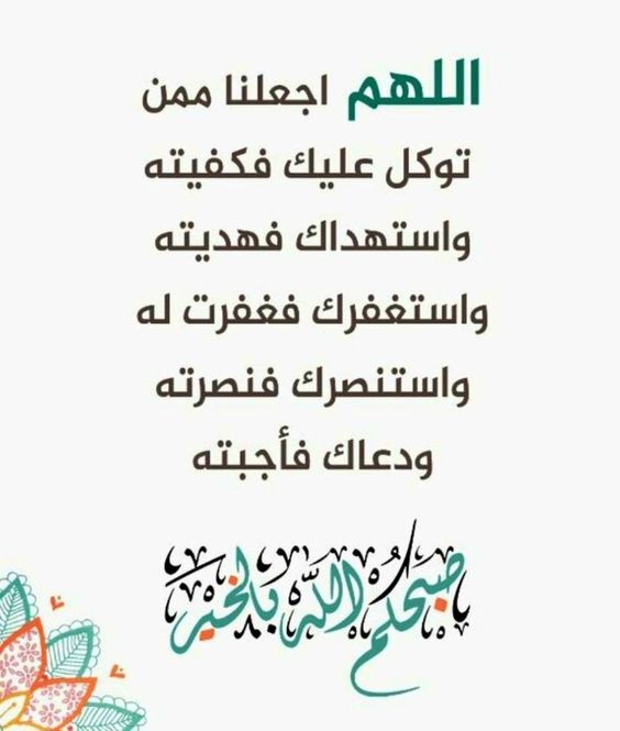 - اللهم يا من توزعت الأرزاق بكرمه، وتنفس الصُبح بأمره، بلِغنا أسمى مراتب الدُنيا وأعلى منازل الآخرة، اللهم ارزقنا إجابة الدعاء، وصلاح الأبناء، وبركة العطاء.