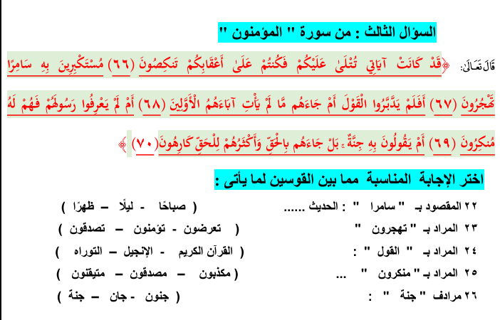 مراجعة دين ثالثة إعدادي ترم ثاني 2024