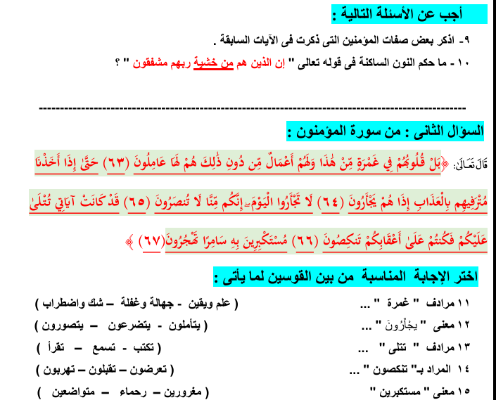 ملخص دين للصف الثالث الاعدادي pdf الترم الثاني